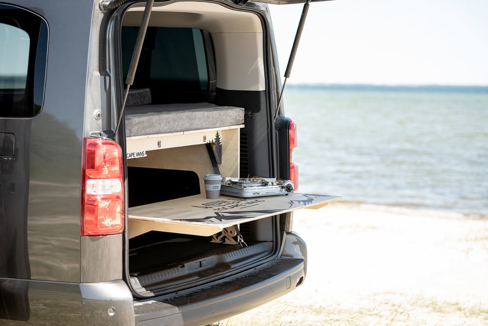 Výsuvný stůl je přístupný po otevření zadních výklopných dveří vozidla.