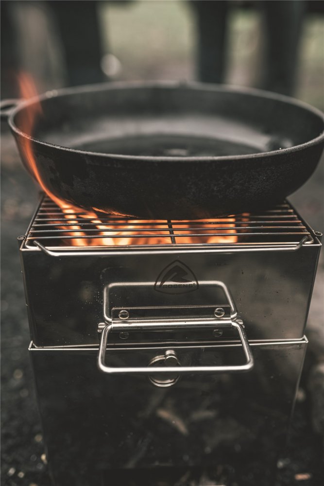 Spaluje dřevo a větve – není třeba nosit palivo Široká horní část pro použití s většími hrnci nebo jako gril Přikládání dřeva z boku pro větší pohodlí při vaření Velmi kompaktní Stabilní základna Přiložený vak na přenášení