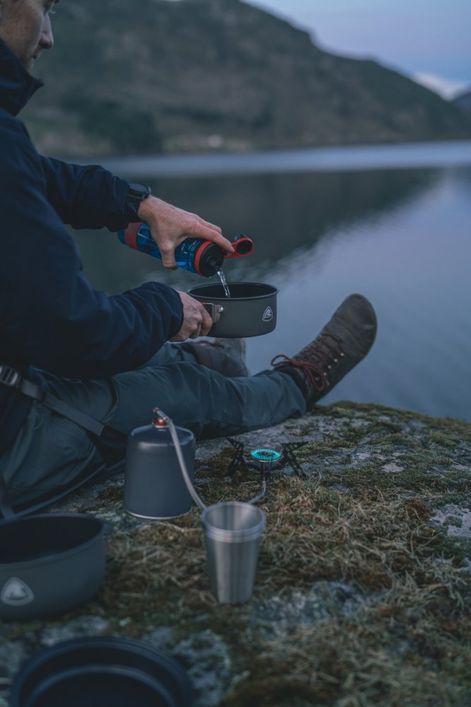 Stabilní podpěra hrnce pro bezpečné vařeníSkládací podpěra nohou/hrnce pro kompaktní velikost baleníVolně stojící vařič s opletenou hadicí z nerezové oceliIdeální na nerovném terénuVysoce kvalitní tvrdě eloxovaný hliníkNepřilnavá povrchová úpravaLehký a kompaktníRukojeti z nerezové oceli s ochrannými silikonovými krytyPánev slouží jako víkoSíťovaný úložný sáček je součástí balení