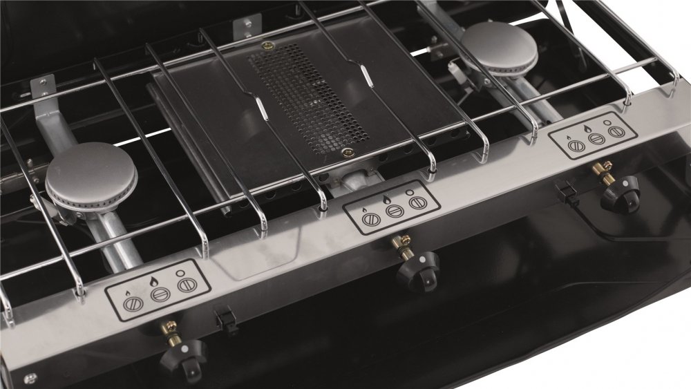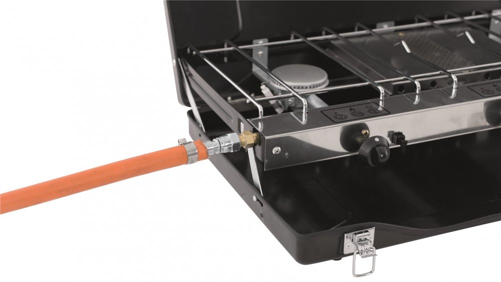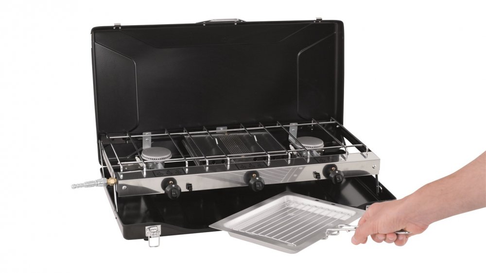 Kompaktní konstrukce vařiče Appetizer Trio usnadňuje jeho balení a přepravu. Dva samostatně ovládané hořáky na každé straně 1500W grilu vám umožní připravit si v kempu vydatnou snídani s toasty, zatímco větrné sklo vás ochrání ve větrných dnech. Skvělá cenově výhodná volba pro rodinnou dovolenou v kempu samostatně nebo jako doplněk ke grilu na dřevěné uhlí. Bezpečně se připojuje k plynové lahvi LGP – hadice není součástí dodávky.
