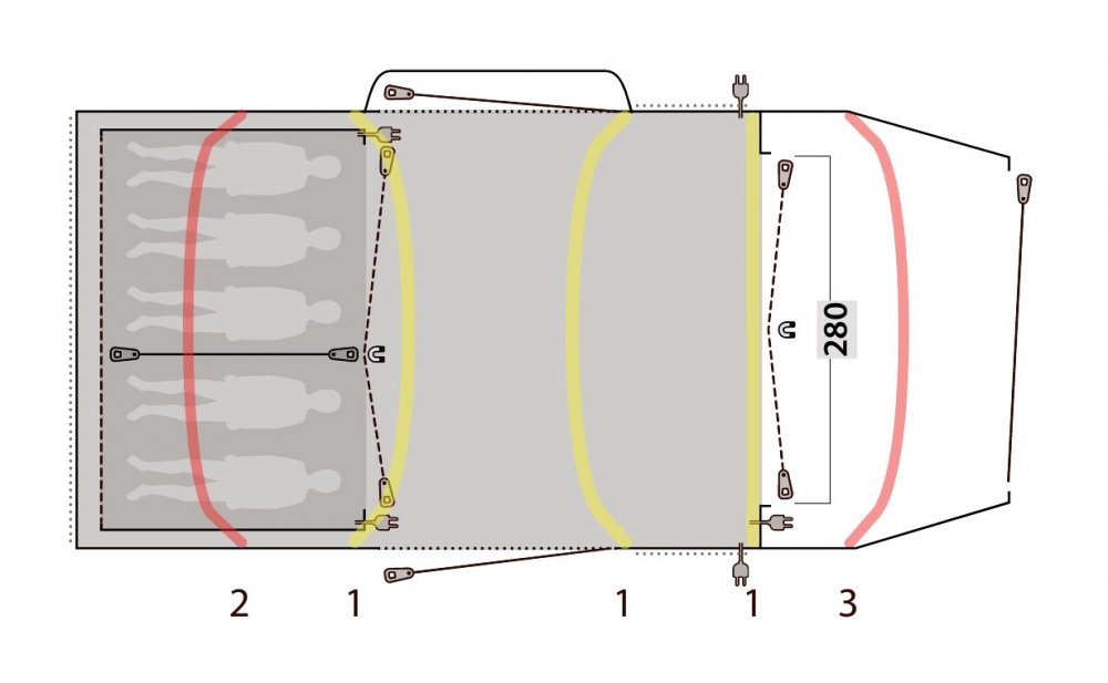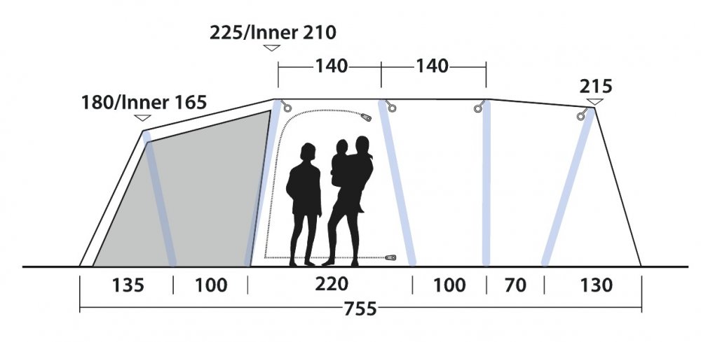 Nafukovací stan Outwell Jacksondale 5PA s velkým prostorem pro hlavu a podlahu v obytné části je ideální volbou pro aktivní rodiny a přátele. Snadno se staví, nabízí flexibilní přístup díky vchodu Rain Safe přes jedny z bočních dveří a skvělé možnosti větrání, které vám umožní regulovat proudění čerstvého vzduchu. Ať už se jedná o krátkou přestávku nebo delší dovolenou v kempu, hladký profil vám zajistí vynikající stabilitu při silném větru. Jeho třízónová konstrukce navíc umožňuje ponechat vlhké oblečení a vybavení v mokré zóně nebo ji využít pro praktické skladování. Ve dvou ložnicích se vyspí až pět osob, takže je to úhledná a pohodlná základna pro vás a vaše blízké, abyste si mohli stylově a pohodlně užívat kempování a dobrodružství v přírodě.