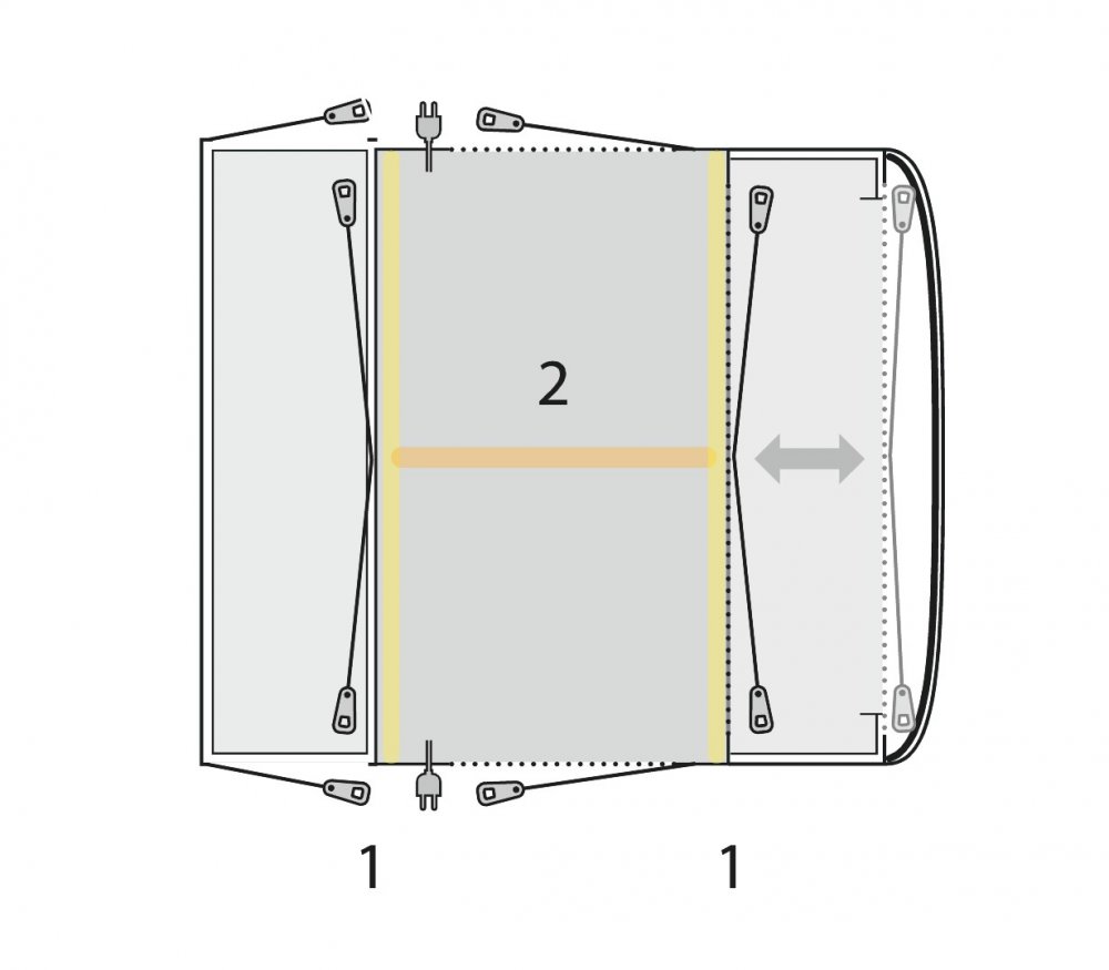Všestrannost nafukovací markýzy Outwell Maryville 260SA Flex s bočním náklonem, která je vyrobena z vynikající odolné, plně nepromokavé ripstopové tkaniny, si zamilujete. Díky velkému prostoru navíc je to váš dokonalý společník na dovolenou na cestách. Zážitky vaší rodiny v obytném voze můžete rozšířit o snadno přístupný, dobře větraný obytný prostor s dostatkem místa nad hlavou a více místa na spaní ve volitelném vnitřním prostoru – užitečné pro teenagery nebo přátele. Velká tónovaná okna v extra širokých bočních dveřích naplní interiér světlem a výhledem na okolní svět. Navíc velká stříška nad pohyblivou přední stěnou s ochrannou síťkou proti hmyzu nabízí buď hluboký úkryt, abyste se mohli vydat do přírody, nebo více uzavřeného obytného prostoru pro pohodlný odpočinek. Ať už se přesouváte, nebo jste usazeni v kempu, lze jej nechat bezpečně volně stojící, abyste si zajistili své místo, zatímco vy a vaše ratolesti vyrážíte za dobrodružstvím.