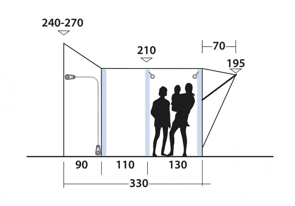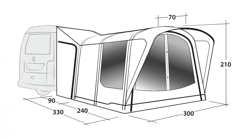 Nafukovací markýza Outwell Newburg 240 Tall se snadno a rychle připevní na obě strany obytného vozu. Je ideální pro přátele, páry hledající další prostor a rodiny s odrostlými dětmi, které chtějí mít soukromí. Tunelový stan má boční dveře kryté síťovinou proti hmyzu a navíc jsou na každé straně dveře Link Access Zone, které jej spojují s vaším obytným vozem. Jejich nastavení podle vašich potřeb a povětrnostních podmínek umožňuje flexibilní možnosti větrání. Sklopný ?u předních dveří, podpořený síťovinou odolnou proti hmyzu, pod stříškou s obočím vám umožní otevřít stan a spojit se s přírodou. Volitelný vnitřní prostor, ve kterém se vyspí dvě osoby, vám rozšíří praktické bydlení v dodávce jako ložnice nebo pro skladování. Nemusíte ho balit, když se společně vydáte na venkovní dobrodružství, protože ho můžete nechat volně stojící bezpečně na svém pozemku připravený jako váš domov z domova po návratu.
