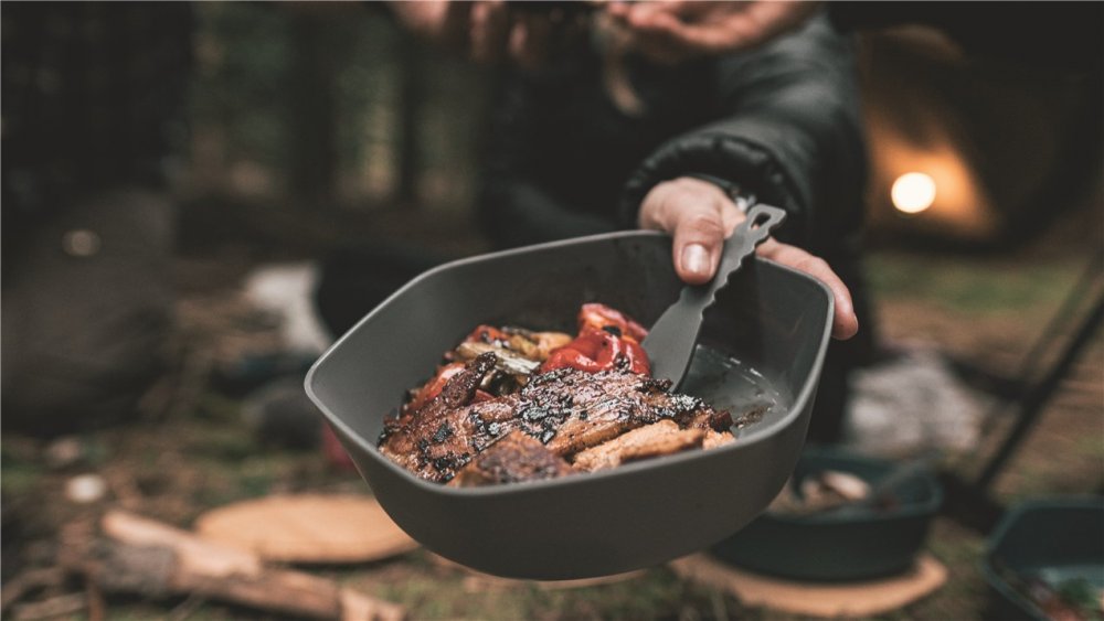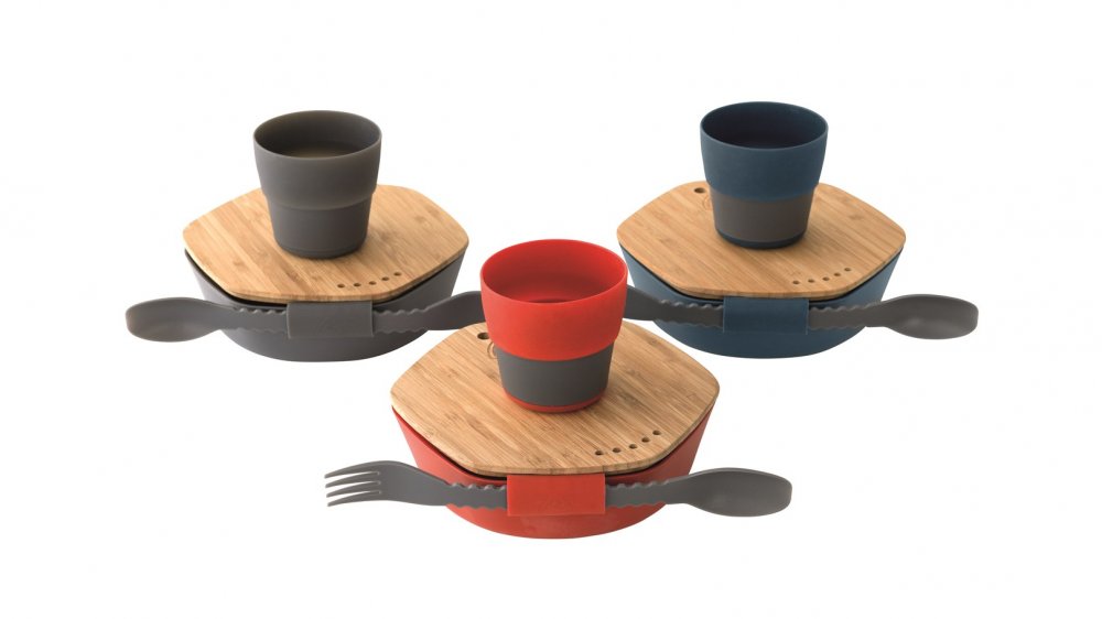 Snadná příprava jídel – řešení šest v jednomMultifunkční jídelní sadaMultifunkční víko funguje jako cedník a prkénkoDíky krásnému šestihrannému tvaru se snadno vejde do batohuLžíci a vidličku lze spojit a použít ve třech různých délkáchDvě sady umístěné společně, aby se ušetřilo místo