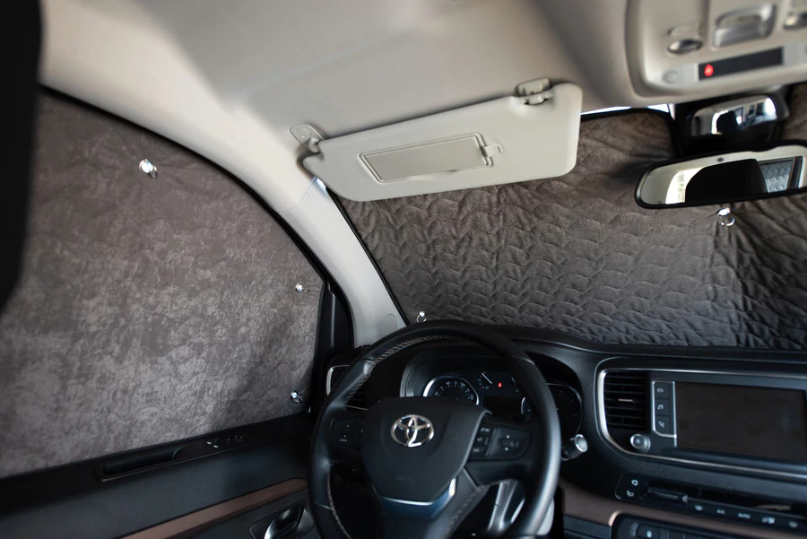 Izolační tepelné zástěny zaprvé poskytují tepelnou izolaci, zadruhé soukromí a zatřetí zaručují dostatečné zatemnění i během dne. Na okna se připevňují pomocí přísavek, takže je lze kdykoli nasadit a sundat, aniž by to způsobilo problémy nebo zásahy do vozu.Dodávají se v sáčku uzavíratelném na zip.Vyrobeno z mikrovlákna, pěnového polyethylenu a hliníku.Dodáváno v obalu na zip.