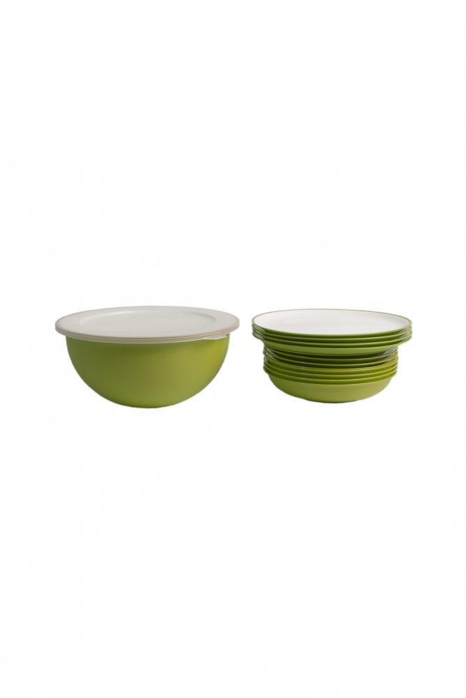 Velká miska s víkem má průměr 26cm a obsah 3,5L; 4x plochý talíř má průměr 24cm a výšku 2cm; 4x hluboký talíř má průměr 20cm a výšku 4cm; 4x malý talíř má průměr 20cm a výšku 2cm