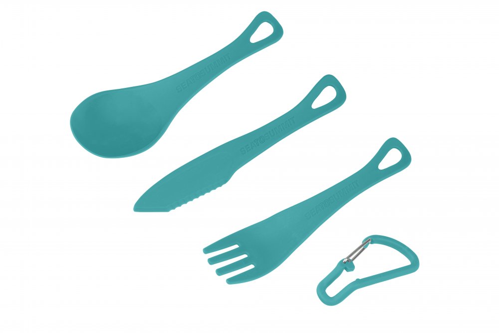 Sada příborů Delta™ Cutlery Set obsahuje krátký nůž, vidličku a lžíci, které jsou navrženy tak, aby se vešly do misky Delta™ bowl. Karabina, která se dodává s příbory, může být použita k zavěšení nebo připevnění celé sady k sobě. Nůž je napůl hladký pro snadné roztírání a napůl vroubkovaný pro snazší krájení.