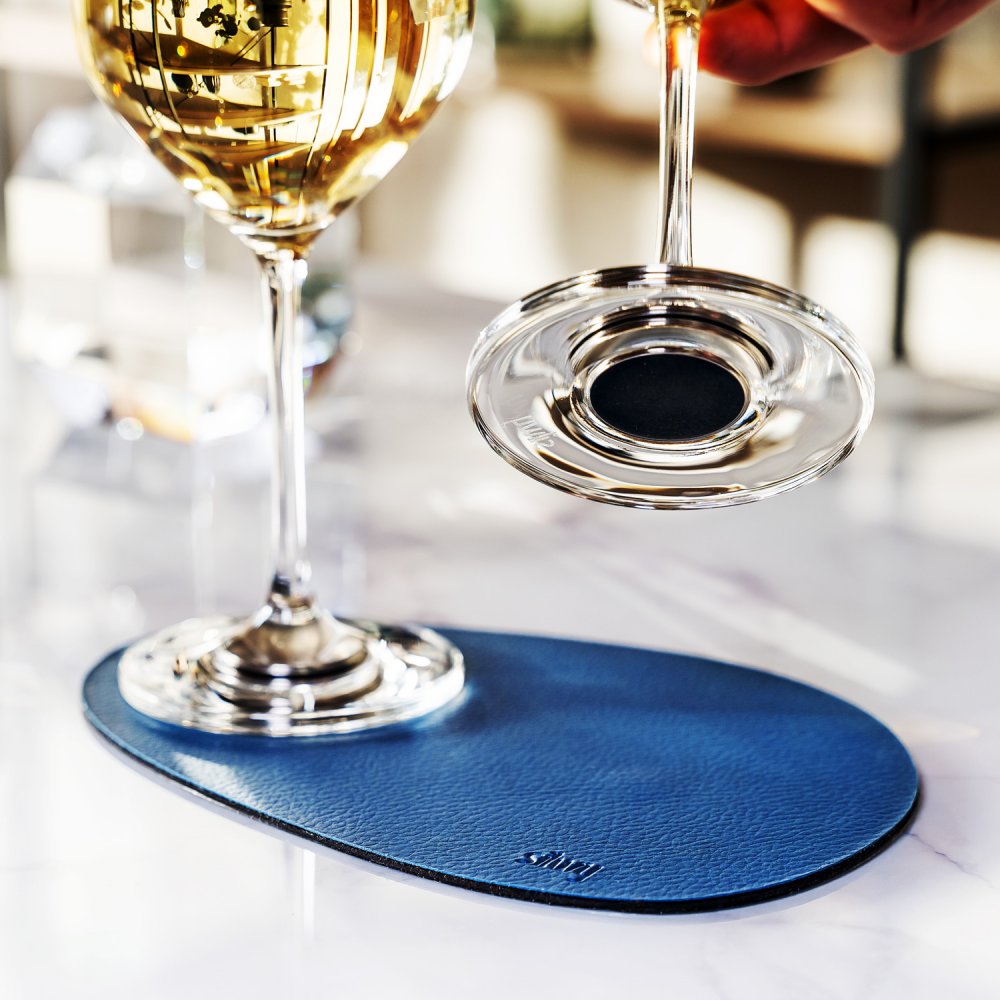 Ve spodní části sklenic se nachází silný magnet, který funguje jako opačný pól k magnetické podložce.