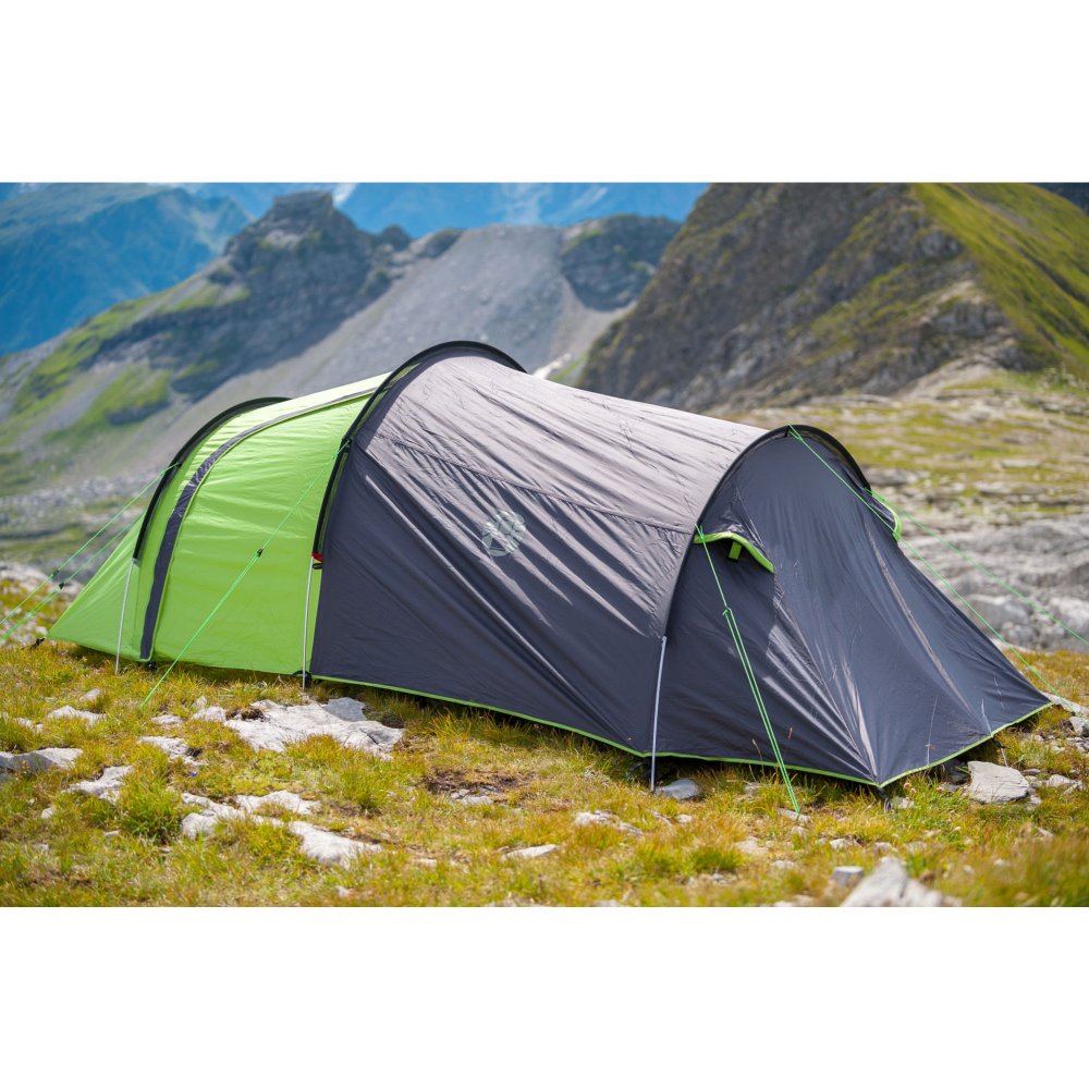 Velmi prostorný a dostatečně lehký tunelový stan pro 3 osoby. Lomená konstrukce zvětšuje výšku stanu a zároveň zvyšuje odolnost konstrukce proti větru a dešti.