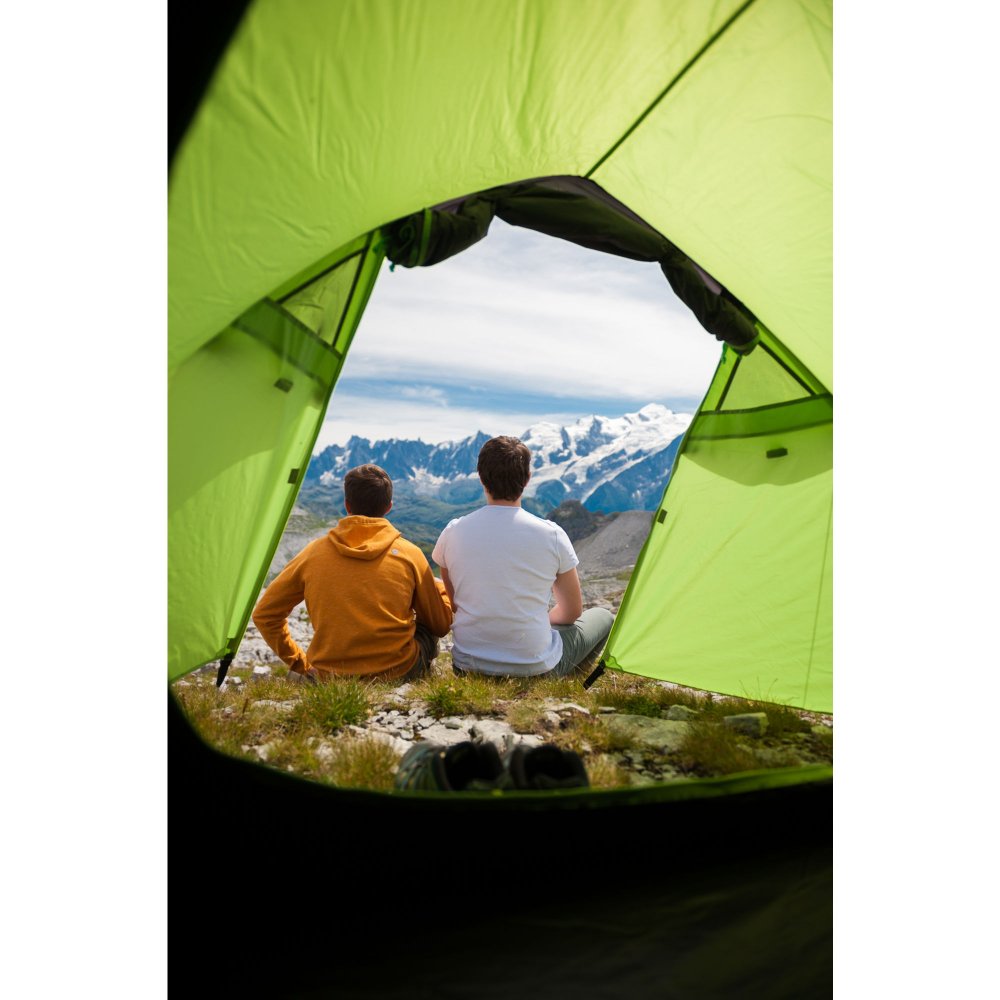 Třímístný samonosný turistický stan se dvěmi zkříženými pruty, tvořícími ložnici a třetí předsunutá lomená tyč vytváří prostornou předsíňku, dokonale kryjící vchod stanu. To umožňuje dostatečné odvětrávání i při dešti.